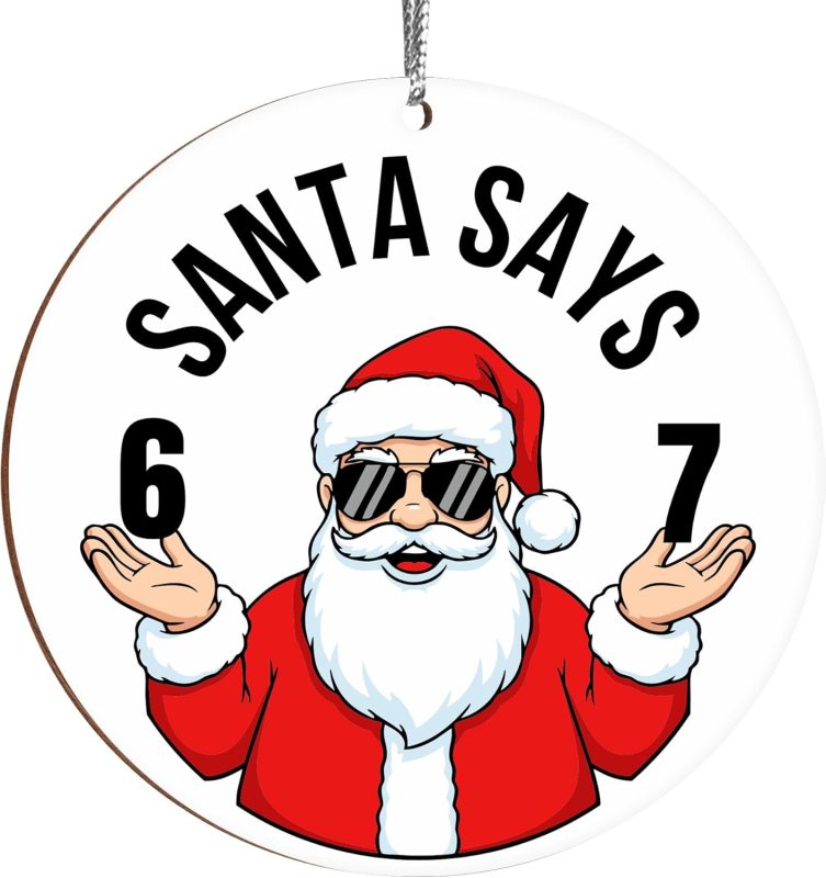 Santa Says Six Seven Christmas Ornament 2025, Funny 67 Meme Ornament, Funny Christmas Ornaments 2025, Santa Ornaments for Christmas Tree, Stocking Stuffers for Teens (White 67)