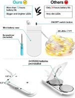 • 【6 Pack Battery Operated LED Fairy Lights】 Powered by 2 CR2032 batteries (included), the 7-foot-long miniature fairy lights come with 20 upgraded energy-saving LEDs, perfect for daily decoration and holiday decorations. Thin copper wire and small LED bulbs will add a sophisticated and cozy touch to your personal space