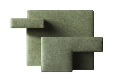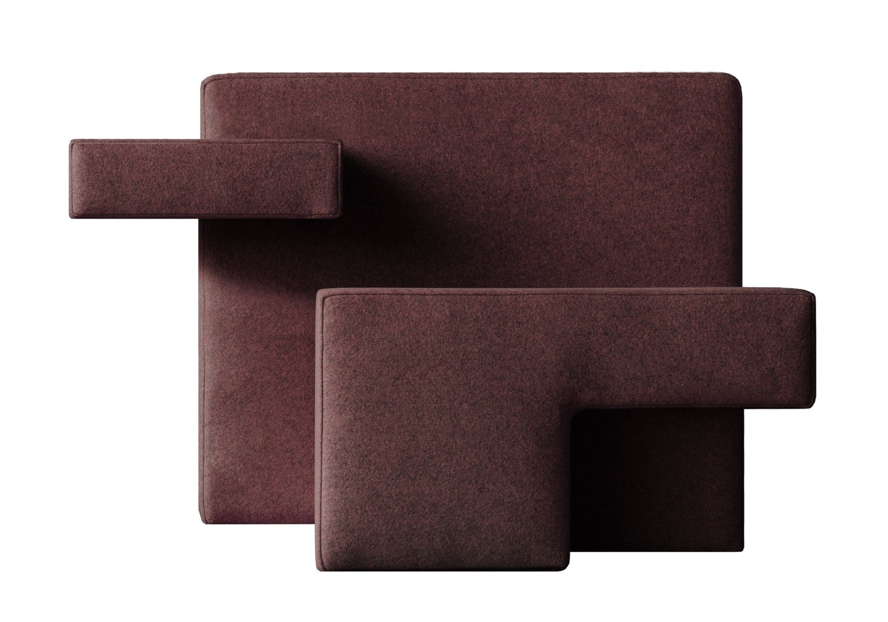 The Primitive Armchair by Qeeboo, designed by Studio Nucleo, is a sculptural seating piece that marries avant-garde aesthetics with everyday comfort. Its design plays with asymmetrical geometric volumes, drawing inspiration from 20th-century art movements like Cubism and Constructivism. Crafted in Italy, the armchair features a solid wooden frame padded with polyurethane foam and upholstered in soft bouclé fabric, offering both visual intrigue and tactile warmth.