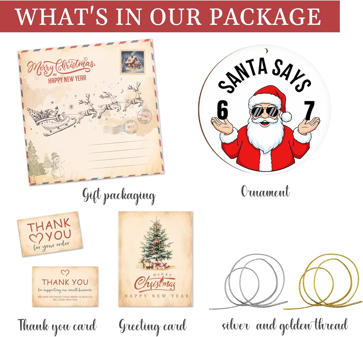 - 🌟 Trendy 2025 Design: Inspired by the viral six seven meme, this Santa ornament captures the spirit of 2025 humor. Add a quirky twist to your holiday décor and keep the laughter alive all season.