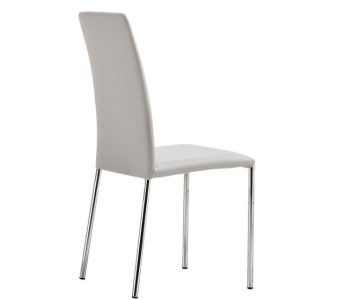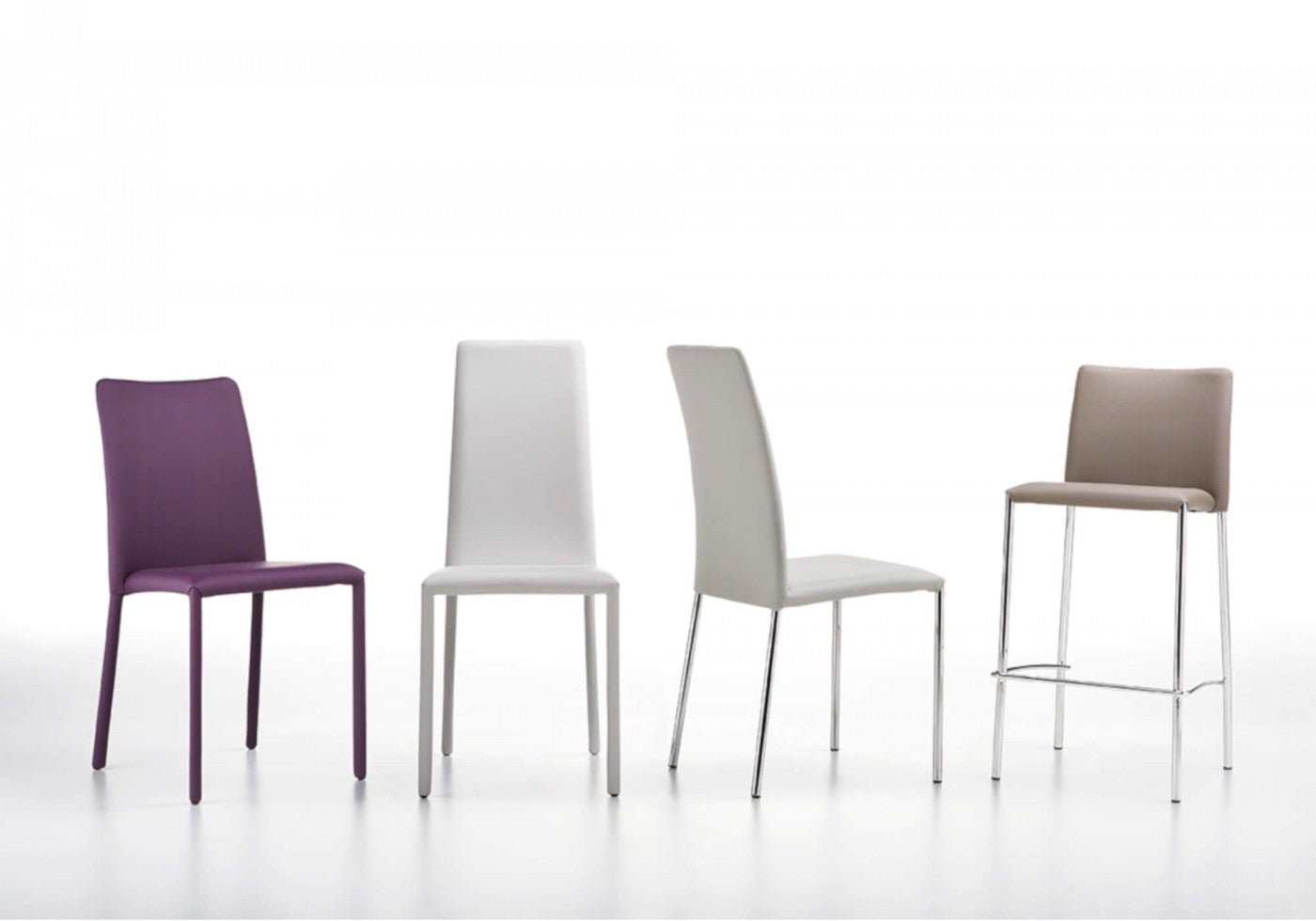 The Silvy Side Chair with steel legs is a versatile contemporary side chair made by the Italian factory Midj.  The Silvy series comes in a variety of forms ranging from two sizes of side chairs to armchairs and stools.  The Silvy Side Chair is available in two different back heights, as well as a large range of fabrics.  The seat and back are completely covered with your choice of fabric or soft leather.  The legs are in tubular steel with a painted or polished chrome finish.